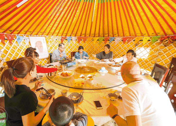 进入到农家乐后,小编发现有很多蒙古包不一样,有餐饮蒙古包、住宿蒙古包、KTV蒙古包、还有大型定制蒙古包。蒙古包以明快的橙色和红色为主,蒙古包之间随处可见的彩旗、化身为自由的烈马、穿有蒙族服饰的服务员,共同营造出草原民族独有的奔放。给人轻松热情的感觉。可以容纳十几人的大圆桌更是体现了蒙古族对待事物的大方与热情。能坐在蒙古包里大口吃肉,新鲜羔羊肉空运自内蒙古大草原,基于蒙古风情,又有所创新“马背上的民族”热情与豪爽,令人感受到民族文化的独特魅力。