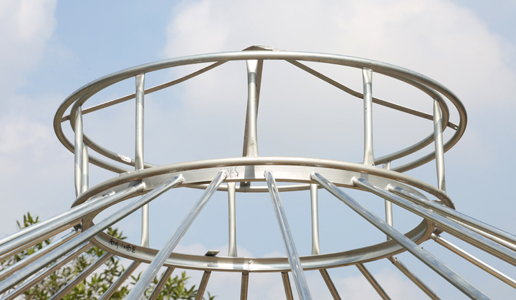 5.安装好后,有膨胀钩,撰眼,固定下扁铁和地面,还有在外面用拉绳固定顶和地面。
