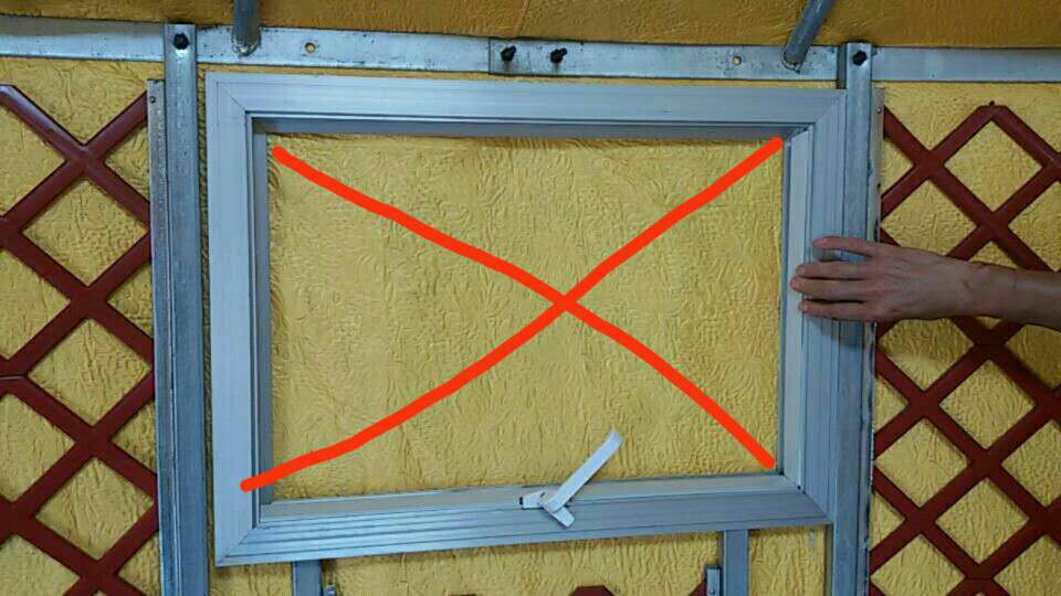 6.窗户剪开,用铁丝从外面按照纱窗四角往里插一下,拿笔画型,然后剪开内层,用窗框固定就可以。