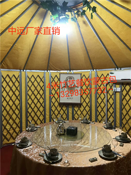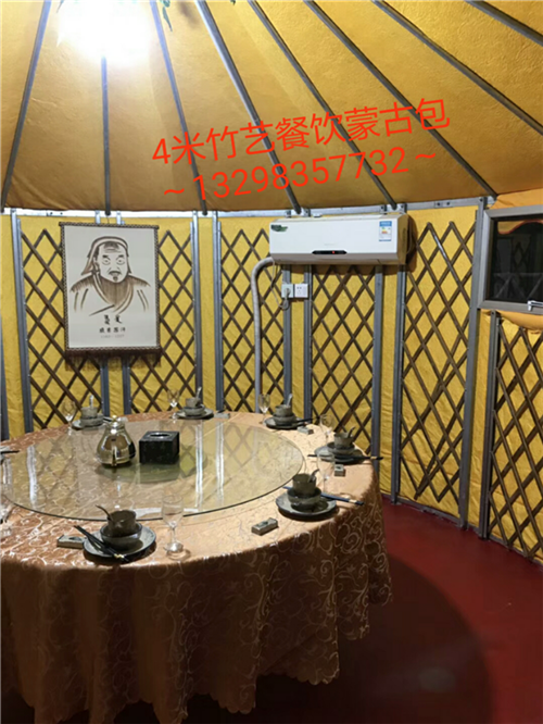 直径4米餐饮蒙古包拥有12个平方,餐饮可以容纳8——10人左右的,里面空间宽敞明亮