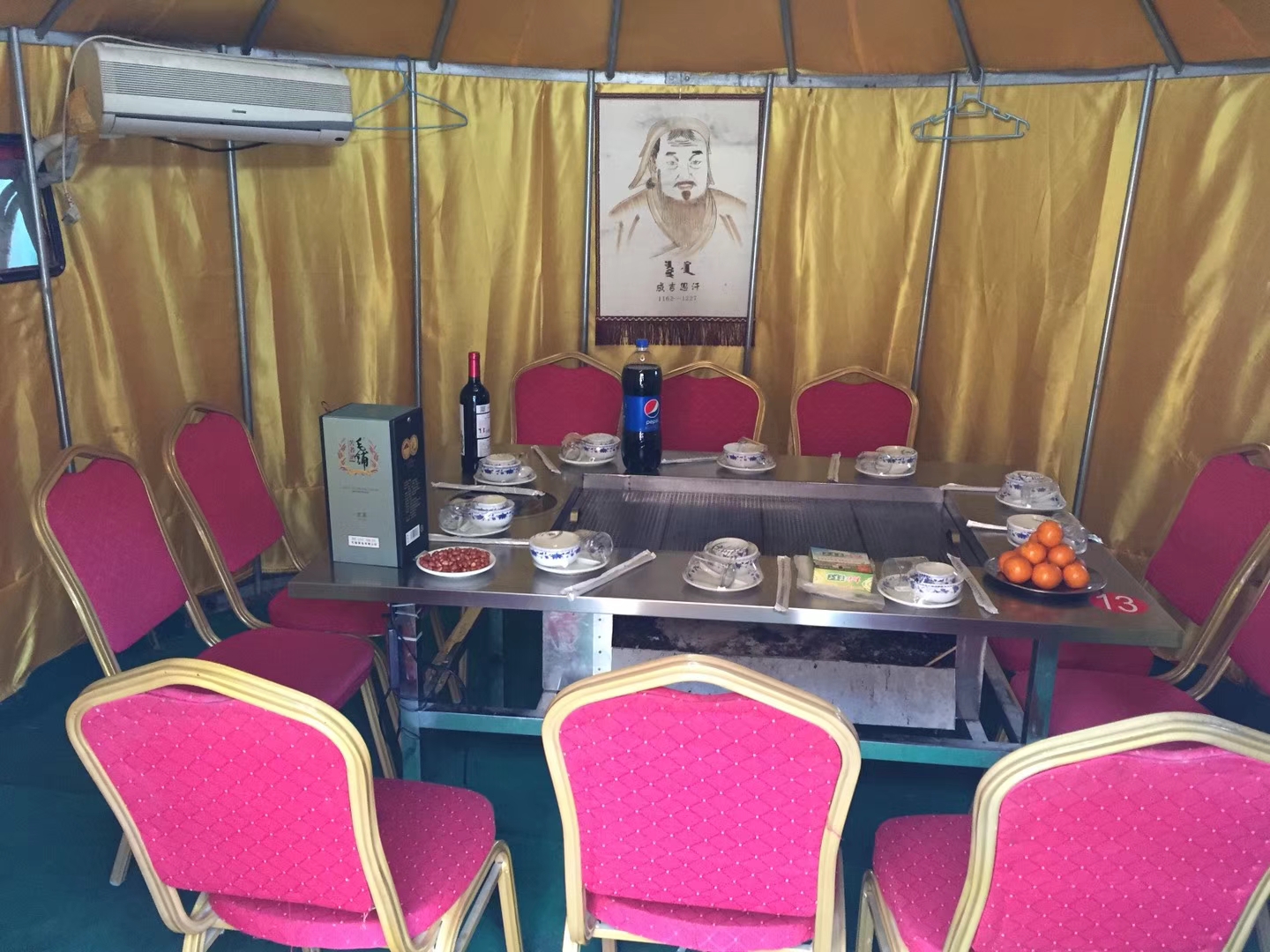 7、结构:框架结构、高频焊接、插件组成,其中直径3米-8米蒙古包,合理框架,不加方钢;直径9米-16米蒙古包,合理框架,内加方钢加固和伞形支架,美观耐用;直径16米以上,另加龙柱四根(包内立柱)