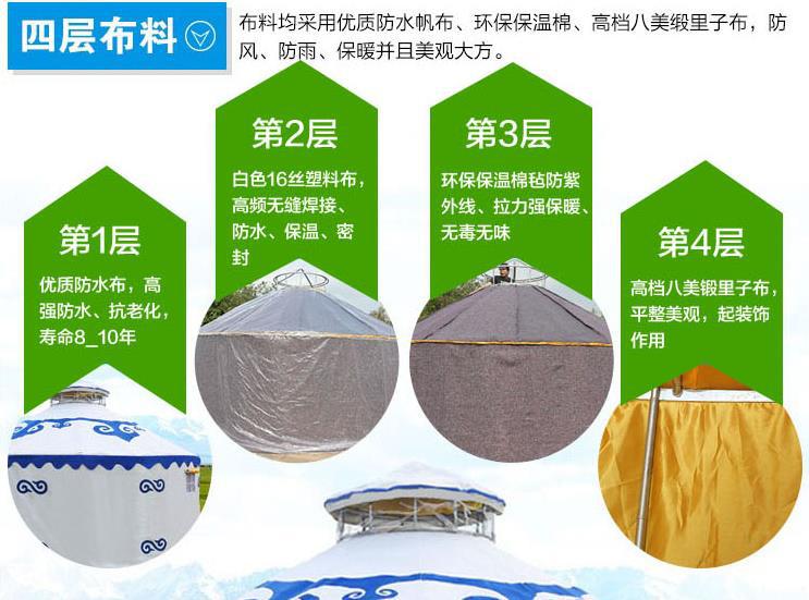 农家乐蒙古包的使用,为产品的推广提供一个展示道具;为产品的推广营造一个促销环境;为产品的推广增设一个宣传窗口。