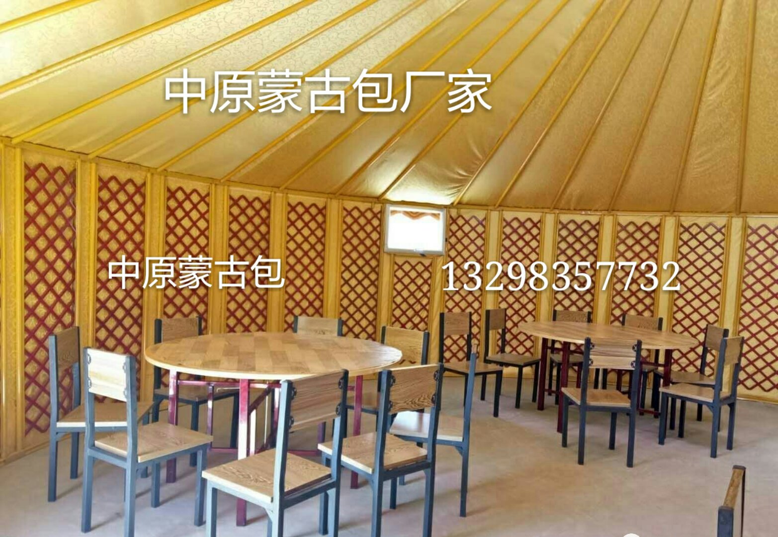 蒙古包尺寸:直径3米——直径30米尺寸,大型蒙古包均可定做生产。
