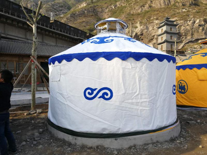 随着科技的发展,蒙古包的底座也在不断的研发创新。现在蒙古包的底座也是多样化,现在用的很多而且很简单的还是在地面上做一个水泥平台。这样简单成本也低,并且容易制作。多大的蒙古包帐篷就做多大的平台。还有的客户比较注重美观,有的客户底座做好后也可以在上面贴上地板砖或木地板等。更有些客户用树木在地面上搭建一个蒙古包底座,像这样的底座前提是一定要结实坚固耐用。还有就是蒙古包厂家出厂的时候用镀锌钢管焊接的一个底座,这种底座代价是比较高的。根据我厂多年的经验还是用水泥底座的比较多,方便快捷,成本低。