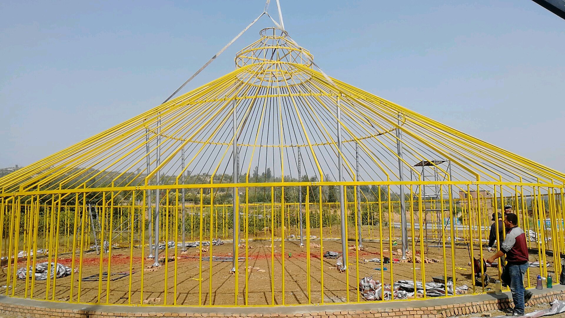 大型蒙古包的篷布就像是成年人重量,所以它的骨架不能像普遍小型蒙古包那样。
