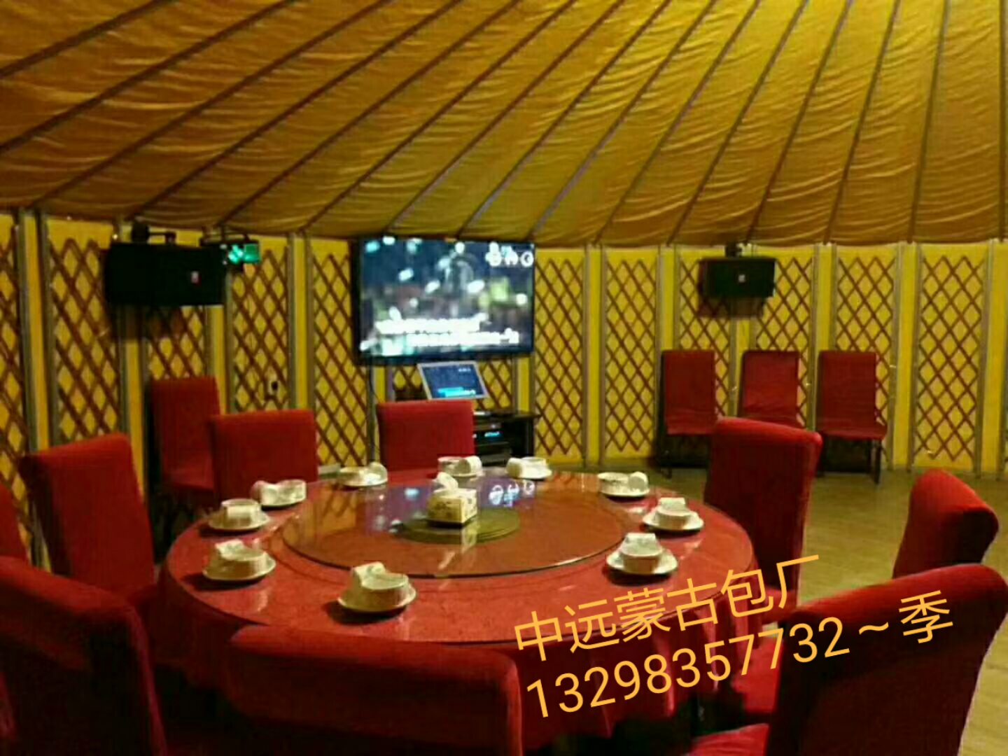 4、采用金黄色的绸缎里子布,易清洗,尊贵奢华,在灯光上能起到很好的反光效果,衬托整个蒙古包里面明亮;