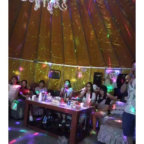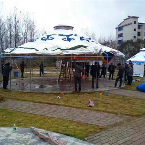 我给大家介绍一下蒙古包的种类和规格。首先蒙古包分,餐饮蒙古包,烧烤蒙古包,住宿蒙古包,农家乐蒙古包,豪华蒙古包,等等..蒙古包的规格分为3米到20米的规格都有,里面是钢结构,外层采用上好的防雨篷布,里面有保温棉一层,再里面是防辐射布,最里面是一层金黄里子布。