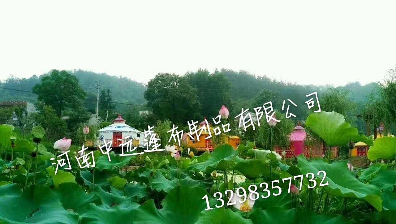 荷花盛开的季节包围着一个一个美丽的蒙古包,好不自在。河南省新县蒙古包案例分享!